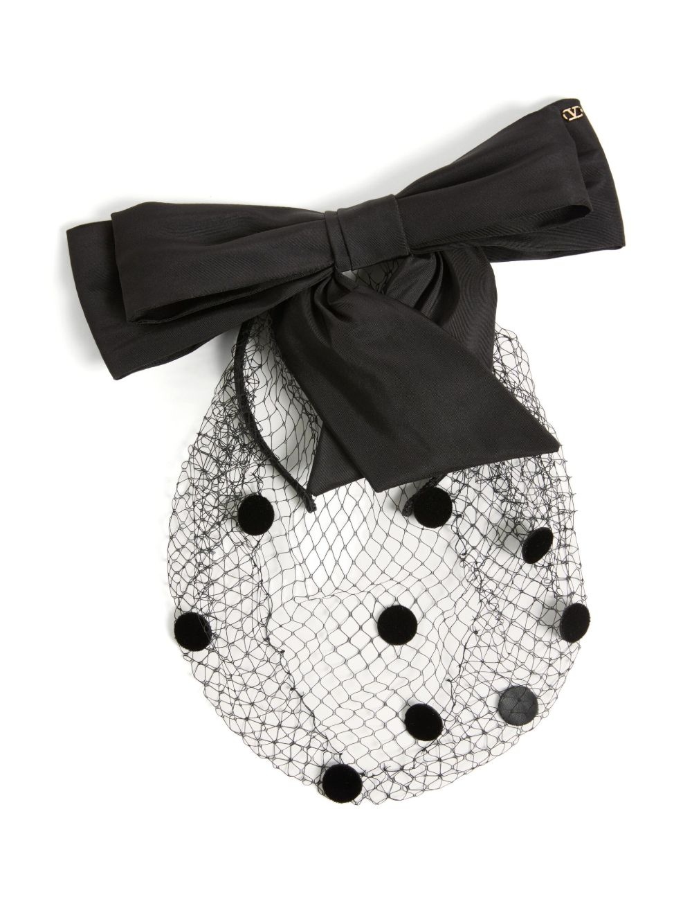 VLogo Signature veil headband Highlights - Black - Pull-on style - Veil detail - Oversize bow detail - Polka dot embroidery Made in Italy Composition Fabric 100%