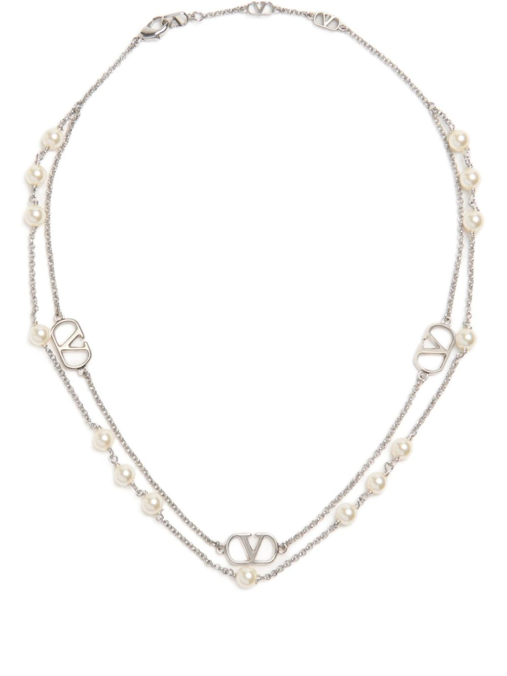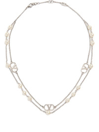 VLogo Signature necklace Highlights - Silver-tone - Metal - Vlogo signature - Lobster claw fastening - Polished finish - Pearl embellishment - Adjustable-length chain Made in Italy