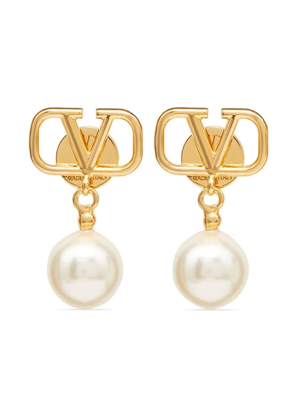 VLogo Signature pearl drop earrings Sometimes two's a crowd, but not in the case of these Valentino Garavani earrings. Boasting a pearl pendant and VLogo detail, they will look wonderful with whatever you have inside your closet. Talk about great ideas. Highlights - Gold-tone - Brass - Vlogo signature - Swarovski pearl pendants - Post-back fastening - For pierced ears - These earrings come as a pair. Made in Italy SIZE & FIT Model measurements Height 5 ft 10 in(1.78 m) Bust/Chest 30.7 in(78 cm) Hips 33.85 in(86 cm) Waist 22.44 in(57 cm) Measurement HEIGHT 0.94 in(2.4 cm) WIDTH 0.51 in(1.3 cm) Washing instructions Read Manufacturer Guidelines