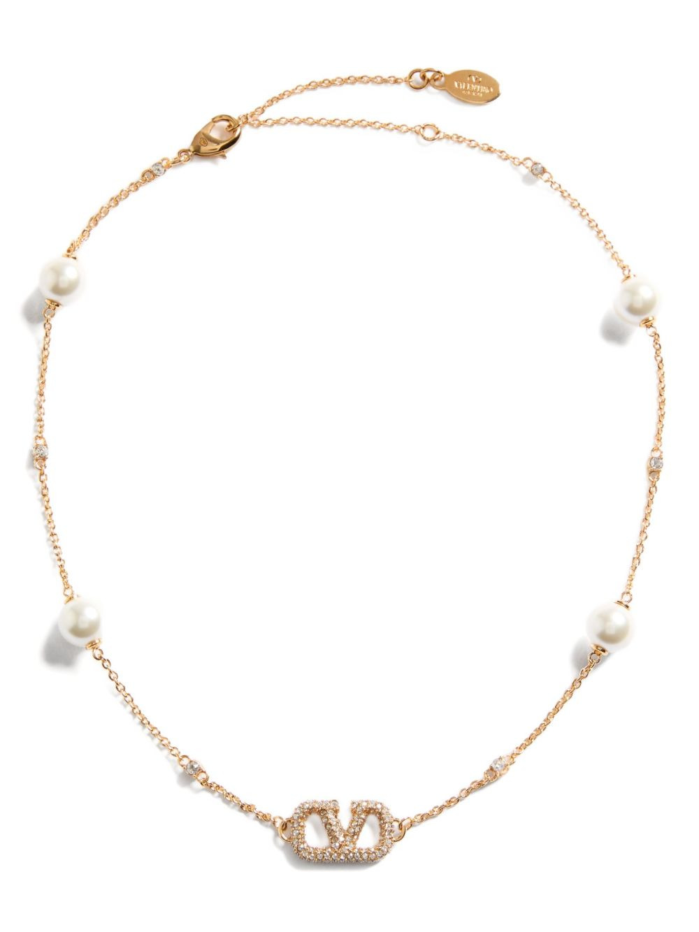 VLogo Signature pearl necklace Highlights - Gold-tone - Polished finish - Delicate chain - Crystal embellishment - Faux-pearl detailing - Vlogo signature - Lobster claw fastening - Adjustable fit Made in Italy SIZE & FIT Measurement Length when open 16.73 in(42.5 cm)
