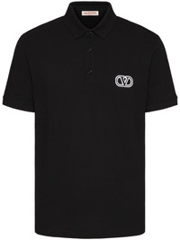 VLogo Signature-patch polo shirt This relaxed-fit polo shirt from Valentino Garavani's SS23 collection is made in Italy from black cotton. It is embellished with the house's signature VLogo at the chest and features a classic polo collar and short sleeves. Highlights - Valentino ready to wear - Black - Cotton - Pique weave - Vlogo signature - Logo patch at the chest - Polo collar - Front button placket - Short sleeves - Short side slits - Straight hem Made in Italy Composition Cotton 100%, Polyester 100% SIZE & FIT Model measurements Height 6 ft 2 in(1.87 m) Bust/Chest 36.41 in(92.5 cm) Hips 35.43 in(90 cm) Waist 29.52 in(75 cm) Measurement CHEST 39.37 in(100 cm) FittingInformation Designed for a relaxed fit, this polo shirt offers comfort and movement Made from a midweight non-stretch fabric, this piece offers minimal elasticity when worn This piece fits true to size – take your usual size Washing instructions Machine Wash