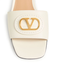 VLogo embellished leather slides Ivory