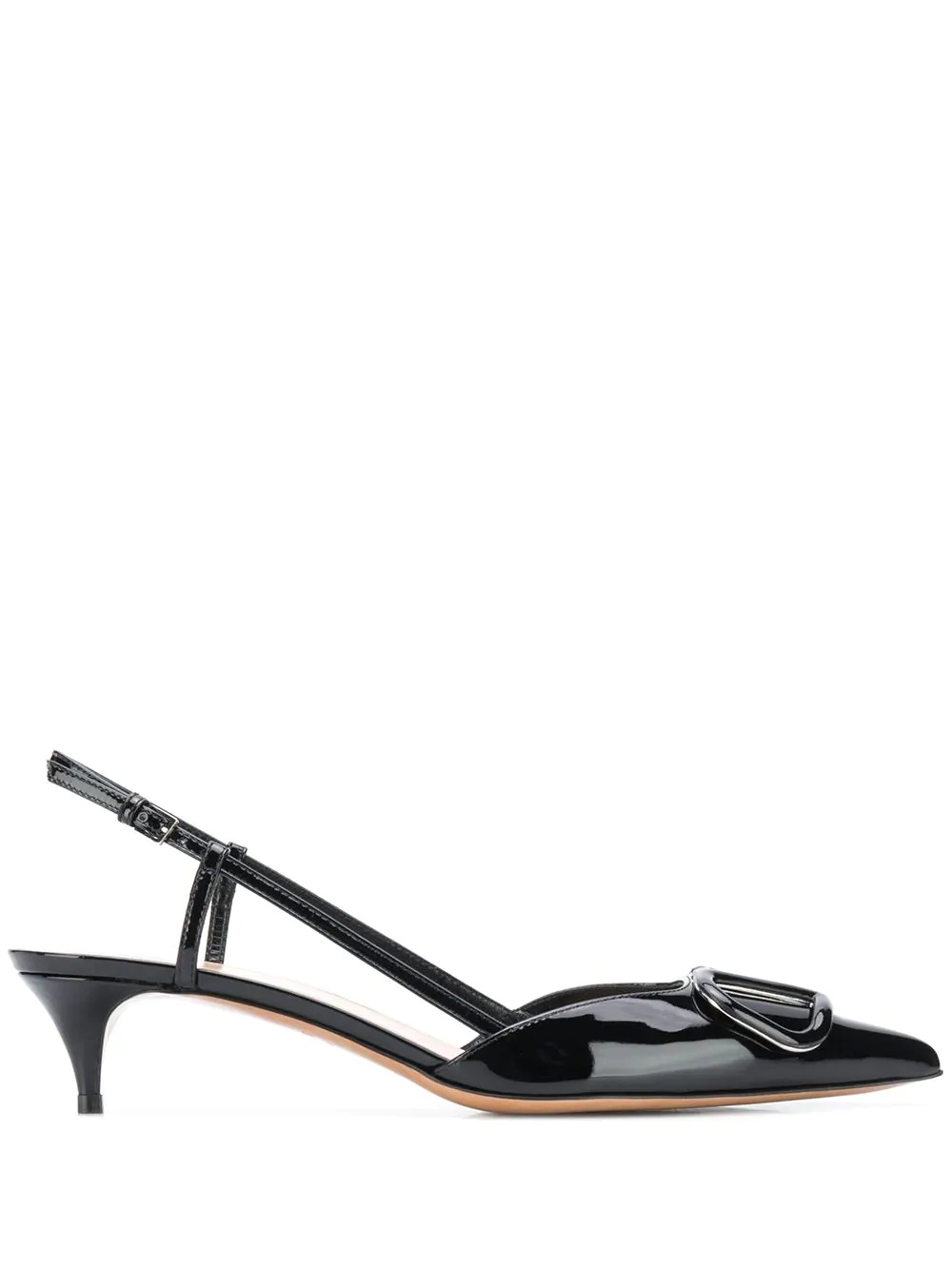 40mm VLogo Signature slingback pumps You had your doubts. But it appears that the perfect pair of everyday heels do exist. And these VLOGO slingback pumps from Valentino Garavani are proof of that. Highlights - Black - Patent leather - Vlogo signature embellishment - Pointed toe - Buckle-fastening slingback strap - 40mm low heel Made in Italy Composition Sole: Calf Leather 100% Lining: Goat Skin 100% Outer: Zamak 100%, Patent Calf Leather 100% SIZE & FIT Measurement HEEL 2.16 in(5.5 cm) Sole height 0.39 in(1 cm) Washing instructions Read Manufacturer Guidelines