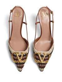 VLOGO SIGNATURE SLINGBACK PUMP WITH CROCHET EMBROIDERY 80MM