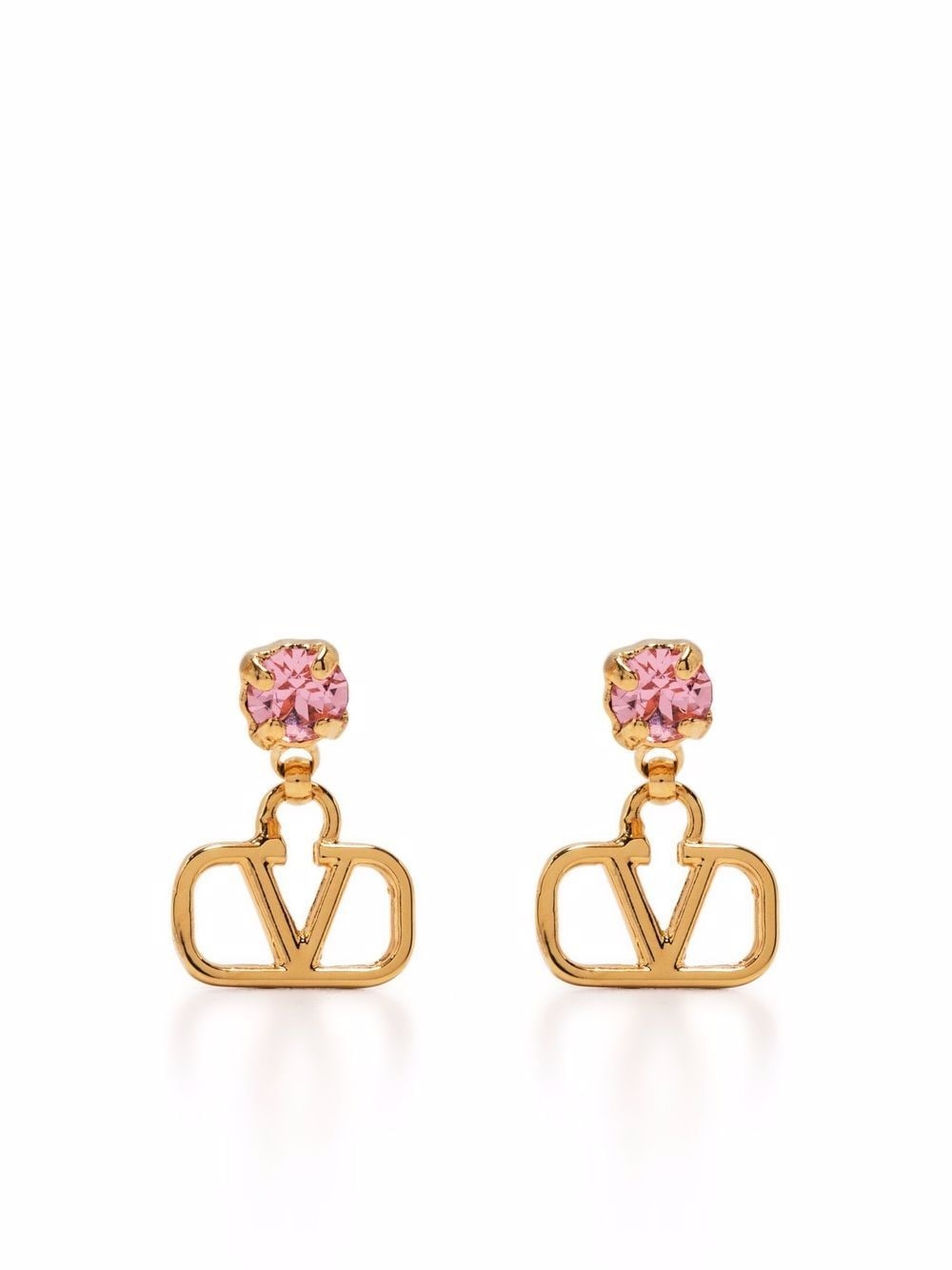 VLogo Signature crystal-embellished earrings Showcasing the signature VLogo detail, these gold-tone stud earrings from Valentino Garavani are accented with a pink-hued crystal embellishment. Highlights - Gold-tone/light pink - Metal - Vlogo signature - Swarovski crystal embellishment - Butterfly fastening - These earrings come as a pair. Made in Italy SIZE & FIT Measurement HEIGHT 0.7 in(1.8 cm) WIDTH 0.47 in(1.2 cm) Washing instructions Read Manufacturer Guidelines