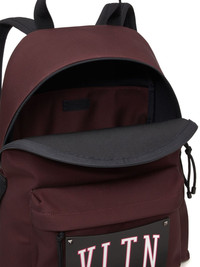 VLTN logo patch backpack Infused with varsity influences, this Valentino Garavani backpack is punctuated front and centre with a collegiate VLTN logo patch. Accentuated with signature Rockstuds, it's finished in complementary burgundy and black hues. Made in Italy Composition Outer: Polyamide 100%, Zamak 100%, Bovine Split Leather 100%, Plastic 100% Lining: Bovine Leather (top grain) 100%, Polyamide 100%, Polyester 100% SIZE & FIT Measurement DEPTH 6.69 in(17 cm) HEIGHT 17.71 in(45 cm) WIDTH 12.59 in(32 cm) Washing instructions Read Manufacturer Guidelines