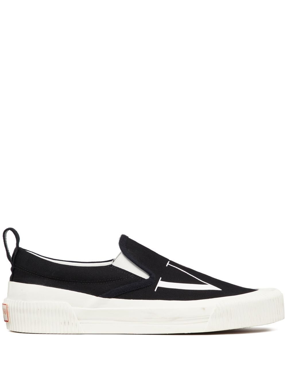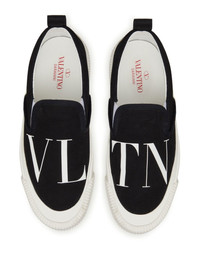 VLTN slip-on sneakers Crafted in italy, these sneakers from Valentino Garavani's SS23 collection feature a classic slip-on style and are enhanced with the houses signature VLTN logo-print to the front in a contrast white colour, evoking the house's use of enduring logo motifs. Imported Composition Outer: Cotton 100%, Polyester 74%, Elastodiene 26% Sole: Rubber 100% Lining: Bos Taurus 100% SIZE & FIT FittingInformation This piece fits large – take one size down Measurement HEEL 1.18 in(3 cm) Sole height 0.78 in(2 cm) Washing instructions Read Manufacturer Guidelines
