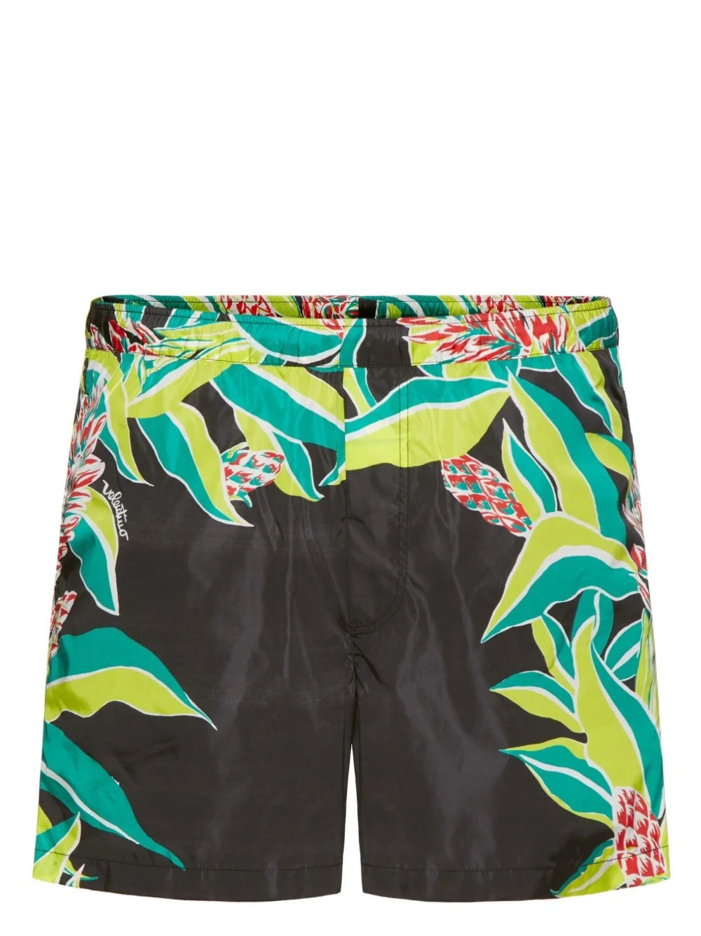 Volcano-print swim shorts Adorned with a contemporary floral print, these swim shorts are imagined by Valentino Garavani for SS23 in a black, green and red colourway. Highlights - Valentino ready to wear - Black/multicolour - All-over volcano print - High waist - Elasticated waistband - Two diagonal pockets to the sides - Be mindful to try on swimwear over your own garments. - The full look includes valentino garavani accessories. - The model is 187 cm / 6'1'' tall and wears an italian size 46 Made in Italy Composition Outer: Polyamide 100% Lining: Polyamide 100% Washing instructions Read Manufacturer Guidelines