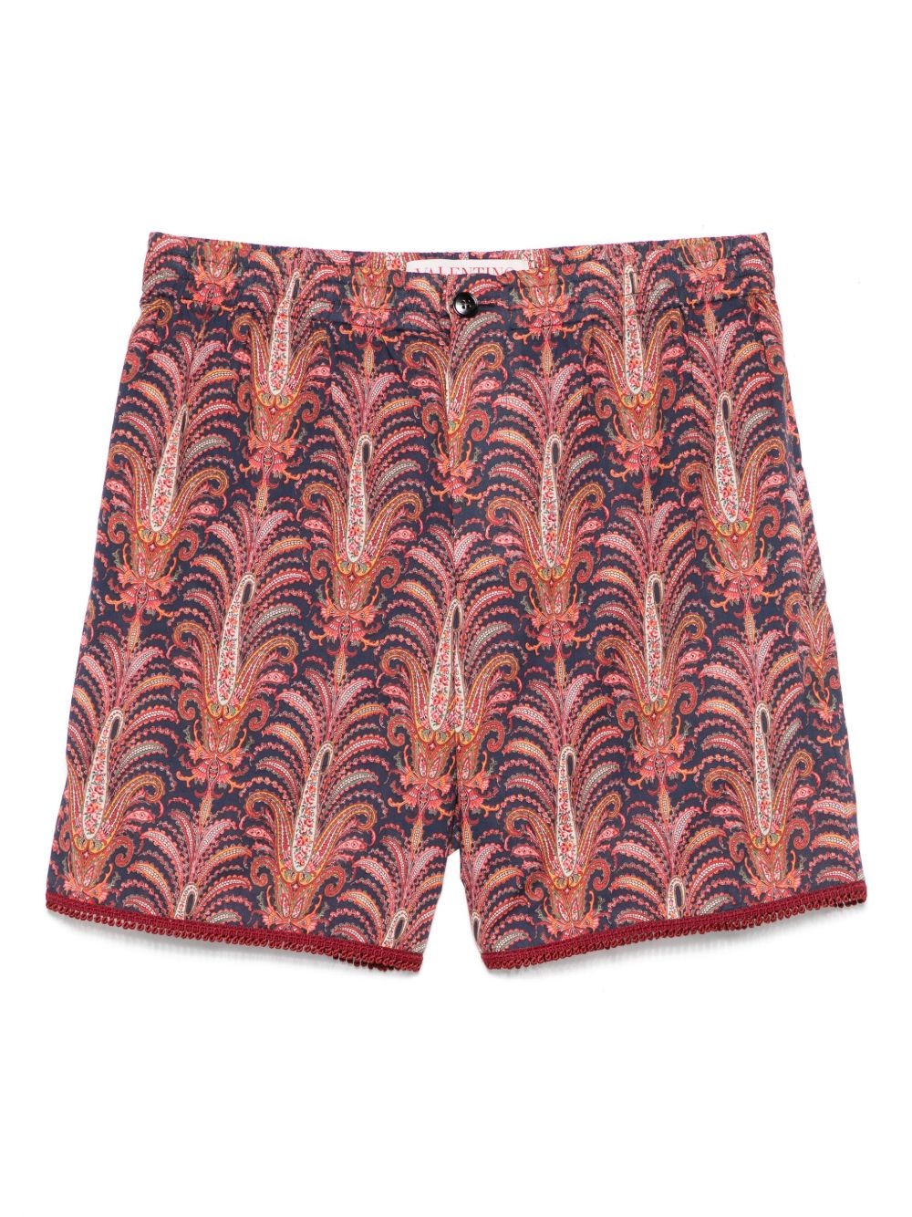 Voyage Imaginaire-print shorts Highlights - Navy blue - Front button and zip fastening - Elasticated waistband with internal drawstring - Two side welt pockets - Rear patch pocket Made in Italy Composition Cotton 100%, Cupro 100%, Acetate 83%, Polyester 17% SIZE & FIT Model measurements Height 6 ft 2 in(1.87 m) Bust/Chest 37 in(94 cm) Hips 33.85 in(86 cm) Waist 27.95 in(71 cm) FittingInformation Designed for a regular fit, offering an even fit over the leg The elasticated waist allows for a comfortable fit Made from a lightweight non-stretch fabric