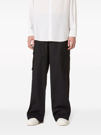 wide-leg cargo trousers The baggy silhouette of these black Valentino Garavani trousers nods to classic utilitarian styles. Made from midweight stretch cotton in Italy, they're fitted with practical cargo pockets at the sides and fall to a wide leg. Highlights - Black - Cotton - Belt loops - Front button and zip fastening - Two side cargo pockets - Wide leg Made in Italy Composition Outer: Cotton 98%, Elastane 2% Lining: Cotton 100% SIZE & FIT Measurement FRONT RISE 13.5 in(34.3 cm) INSIDE LEG 32.51 in(82.6 cm) BACK RISE 15 in(38.1 cm) HIPS 40 in(101.6 cm) Hem Width 24.01 in(61 cm) WAIST 34.01 in(86.4 cm)