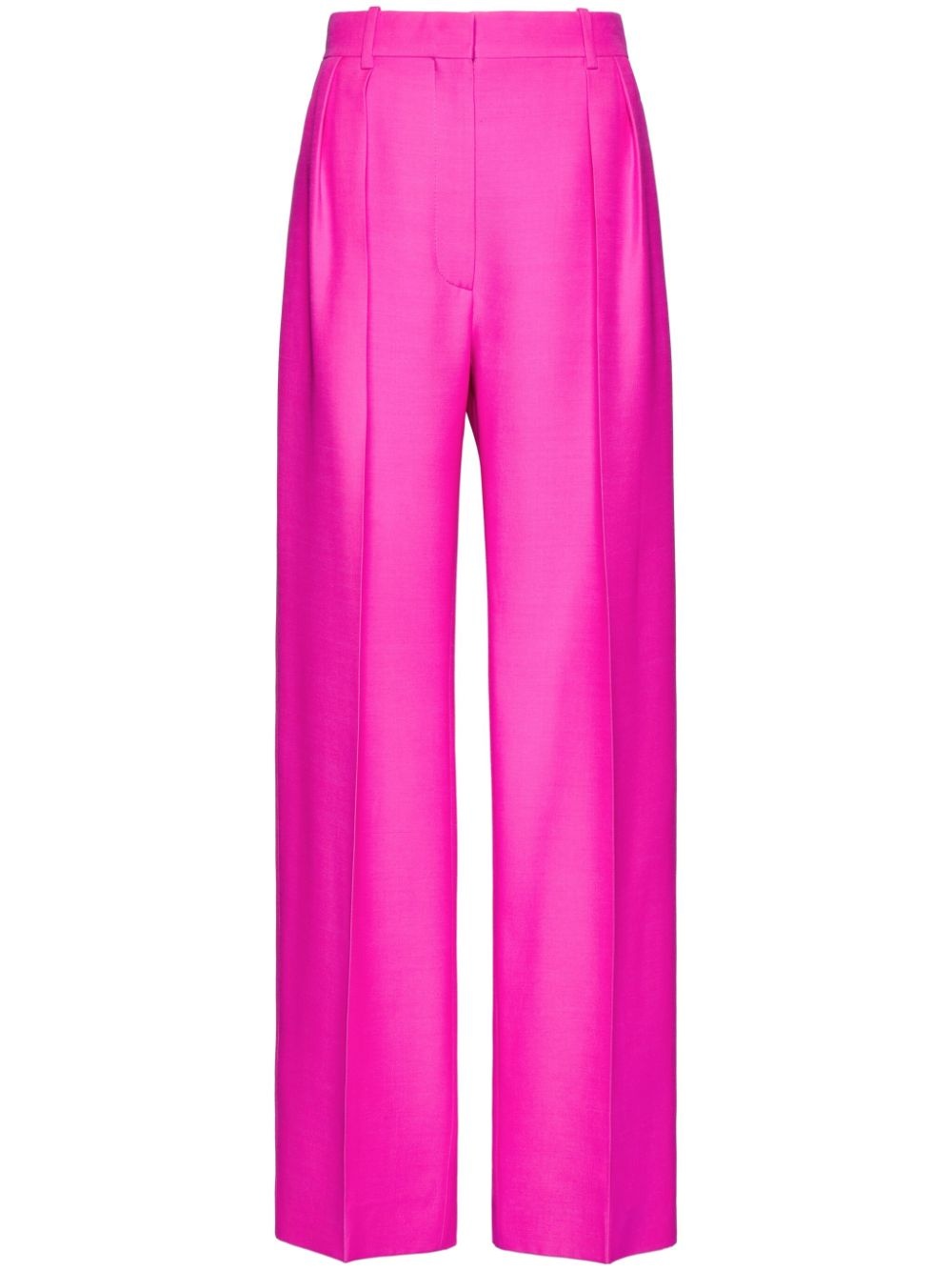 Crepe Couture wide-leg trousers In true Valentino Garavani style, a classic silhouette is enhanced with a dramatic appeal. Presented in a vibrant pink colourway, these tailored trousers fall to an extra long length which contributes to their bold appearance. Highlights - Valentino ready to wear - Pink pp - Virgin wool-silk blend - High-waisted - Belt loops - Pressed crease - Concealed front fastening - Slip pockets to the sides - Extra-long length - Wide leg - Tailored cut - The full look includes valentino garavani accessories. Made in Italy Composition Outer: Virgin Wool 65%, Silk 35% Lining: Viscose 63%, Silk 37%
