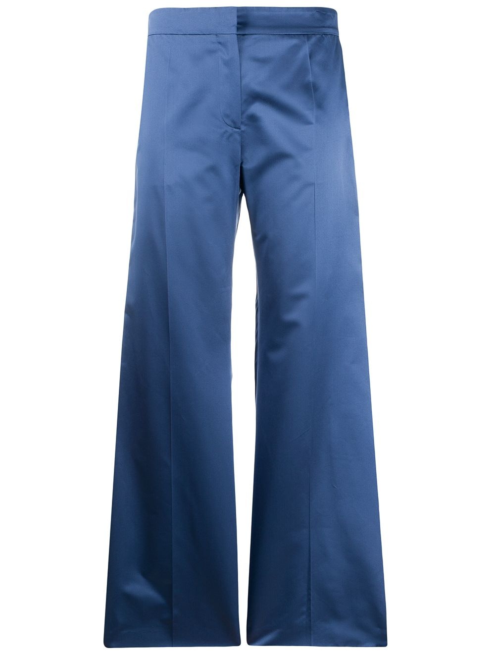 wide leg tailored trousers Throw our your skinny jeans; the wide leg is back in. Made from silk, these blue trousers have a high waist, a tailored style and a wide leg. Dress up or down accordingly. Made in Italy Composition Outer: Silk 100% Lining: Viscose 63%, Salpa 37% SIZE & FIT Model measurements Height 5 ft 11 in(1.8 m) Bust/Chest 31.49 in(80 cm) Hips 35.82 in(91 cm) Waist 24.8 in(63 cm) Measurement FRONT RISE 9.05 in(23 cm) INSIDE LEG 30.31 in(77 cm) BACK RISE 11.02 in(28 cm) Hem Width 22.04 in(56 cm) HIPS 34.25 in(87 cm) WAIST 27.95 in(71 cm)