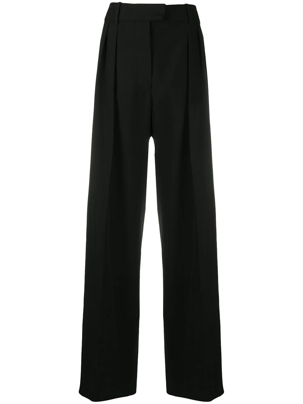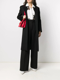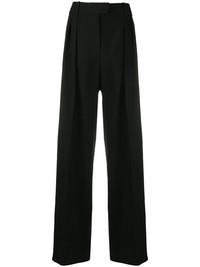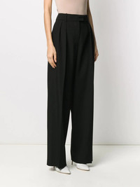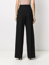 wide-leg trousers All those eligible tops in your wardrobe deserve a partner, don’t you agree? These black trousers have been expertly crafted in Italy from virgin wool, boasting a wide leg. With love from Valentino Garavani aka matchmaker. Highlights - Valentino ready to wear - Black - Virgin wool - Wide-leg - High waist - Concealed front fastening - Belt loops - Two side inset pockets - Rear flap pocket Made in Italy Composition Lining: Cupro 100% Outer: Virgin Wool 100% SIZE & FIT Model measurements Height 5 ft 10 in(1.79 m) Bust/Chest 33.07 in(84 cm) Hips 35.82 in(91 cm) Waist 24.01 in(61 cm) FittingInformation This piece fits true to size. We recommend you get your regular size Designed to be fitted at the waist, loose over the leg Made with a mid-weight non-stretch fabric Washing instructions Read Manufacturer Guidelines