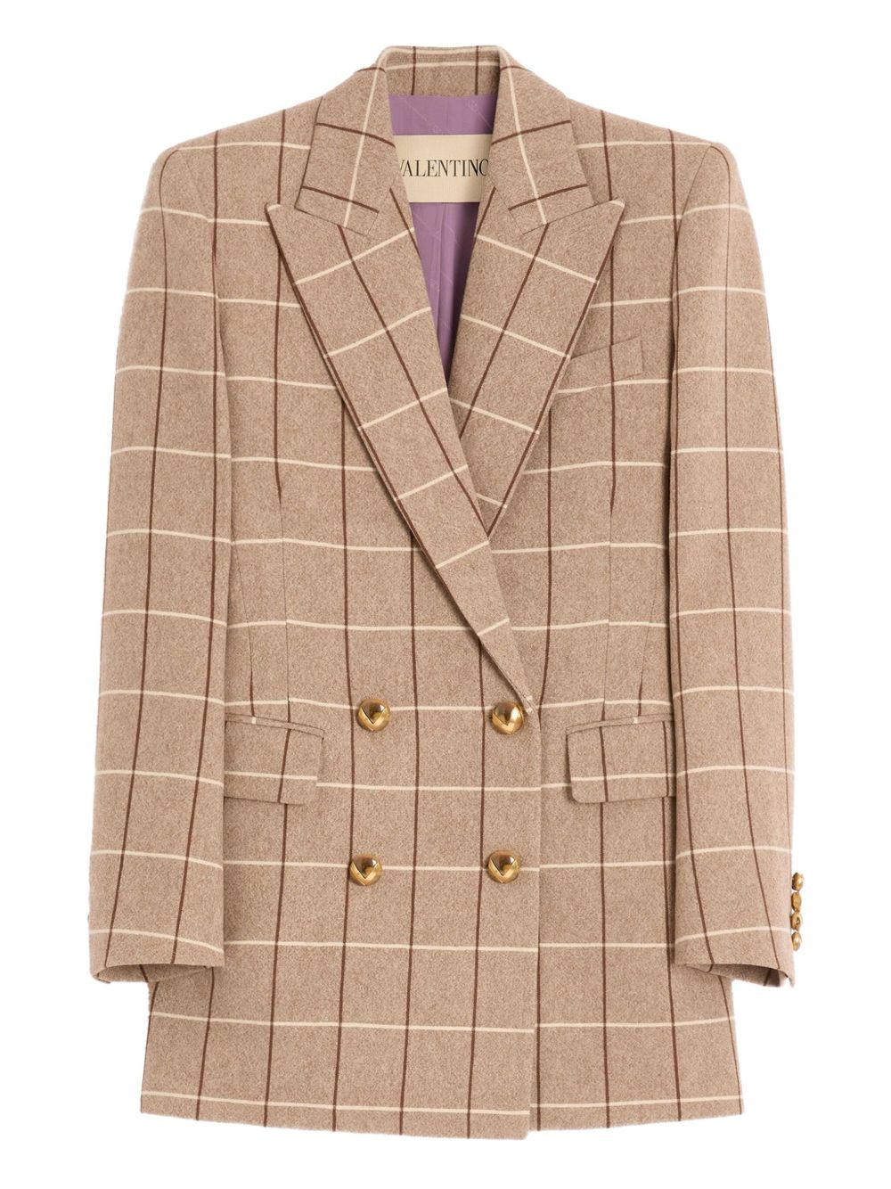 windowpane-check double-breasted blazer Highlights - Beige - Windowpane check pattern - Double-breasted - Shoulder pads - Gold-tone buttons - Wool Made in Italy Composition Outer: Virgin Wool 100% Lining: Bio Acetate 75%, Silk 25% Washing instructions Read Manufacturer Guidelines