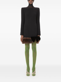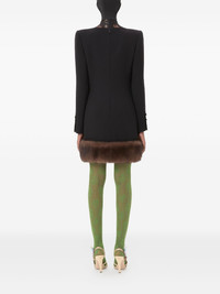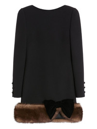 wool crepe short dress Highlights - Crepe texture - Shearling trim - Velvet bow detail - Shoulder straps - Rear zip and hook-and-eye closure - Georgette stretch lining - Short length - The model is 176 cm / 5'9" tall and wears an italian size 40 Made in Italy Composition Outer: Virgin Wool 100% Lining: Silk 91%, Spandex/Elastane 9% SIZE & FIT Measurement WAIST 25.59 in(65 cm) HIPS 35.03 in(89 cm) BUST 32.28 in(82 cm) Washing instructions Read Manufacturer Guidelines