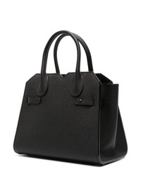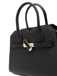 mini Milano leather tote bag Highlights - Black - Calf leather - Grained texture - Gold-tone hardware - Open top - Concealed magnetic fastening - Strap closure and twist-lock fastening - Two rolled top handles - Detachable shoulder strap - Main compartment - Internal zip-fastening pockets Made in Italy Composition Outer: Calf Leather 100% SIZE & FIT Measurement DEPTH 5.51 in(14 cm) HANDLE 3.93 in(10 cm) HEIGHT 7.87 in(20 cm) STRAP 41.73 in(106 cm) WIDTH 9.84 in(25 cm)