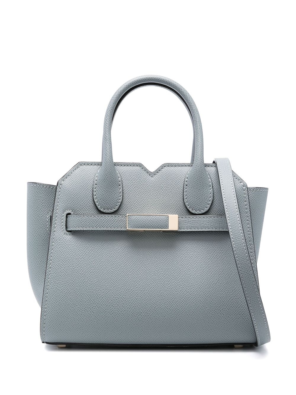 mini Milano tote bag Highlights - Blue-grey - Magnetic fastening - Two rolled top handles - Adjustable detachable shoulder strap - Metal feet Made in Italy Composition Leather 100% SIZE & FIT Model measurements Height 5 ft 11 in(1.8 m) Bust/Chest 32.67 in(83 cm) Hips 35.82 in(91 cm) Waist 25.98 in(66 cm) Measurement DEPTH 3.93 in(10 cm) HANDLE 4.33 in(11 cm) HEIGHT 5.9 in(15 cm) WIDTH 7.87 in(20 cm)