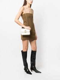 Nolo small crossbody bag Valextra's Nolo bag is an undeniable wardrobe classic. In a neutral white hue, the design is presented in supple calf leather for a finish that takes on a clean and minimalist look. Made in Italy Composition Outer: Calf Leather 100% SIZE & FIT Model measurements Height 5 ft 11 in(1.8 m) Bust/Chest 31.49 in(80 cm) Hips 36.22 in(92 cm) Waist 25.59 in(65 cm) Measurement DEPTH 2.75 in(7 cm) HEIGHT 5.51 in(14 cm) STRAP 18.5 in(47 cm) WIDTH 7.48 in(19 cm)