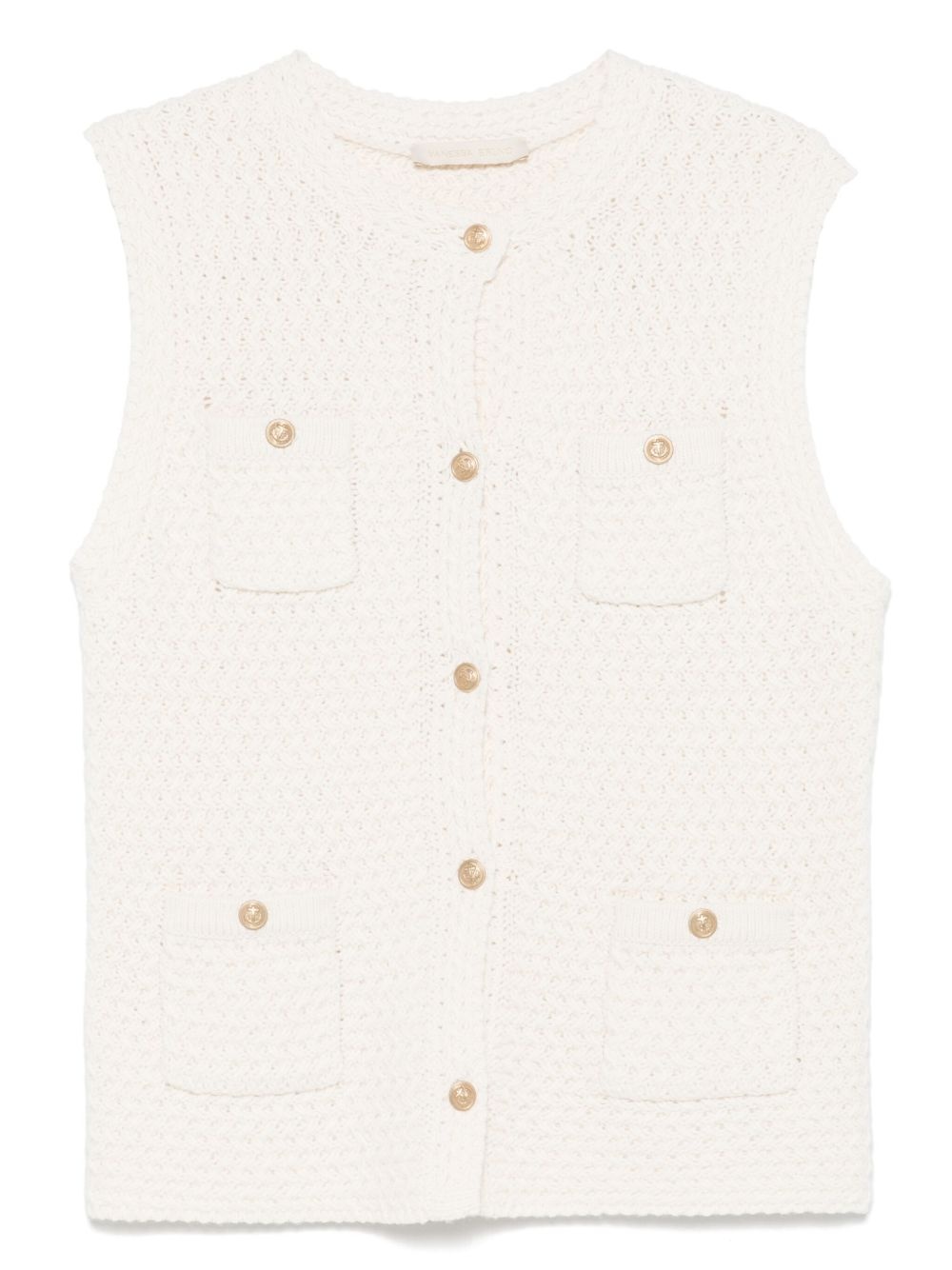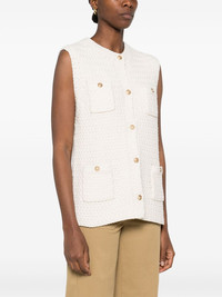 Elisabeth gilet Highlights - Light beige - Front button fastening - Two chest patch pockets - Two front patch pockets - Sleeveless Imported Composition Wool 55%, Cotton 45% SIZE & FIT Model measurements Height 5 ft 10 in(1.78 m) Bust/Chest 31.49 in(80 cm) Hips 37 in(94 cm) Waist 23.62 in(60 cm) FittingInformation Designed for a relaxed fit, this piece allows for comfort and movement when worn Made with a midweight knit, this piece offers some stretch Washing instructions Hand Wash