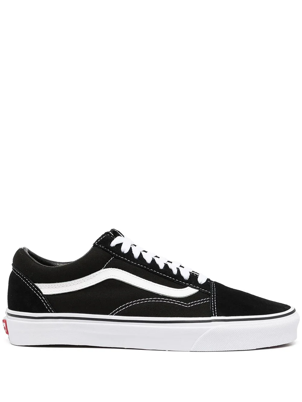 Old Skool two-tone sneakers black/white leather branded insole contrast stitching two-tone design round toe front lace-up fastening flat rubber sole Imported Composition Outer: Canvas 100%, Leather 50% Sole: Rubber 100% Lining: Fabric 50% SIZE & FIT Measurement Sole height 0.78 in(2 cm)