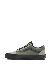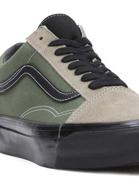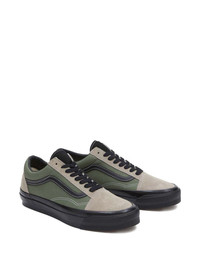 Premium Old Skool sneakers Highlights - Olive green - Front lace-up fastening - Flat rubber sole - Logo at the sole - Colour-block panelled design Imported Composition Lining: Leather 100%, Fabric 100% Outer: Fabric 100%, Suede 100% Sole: Rubber 100%
