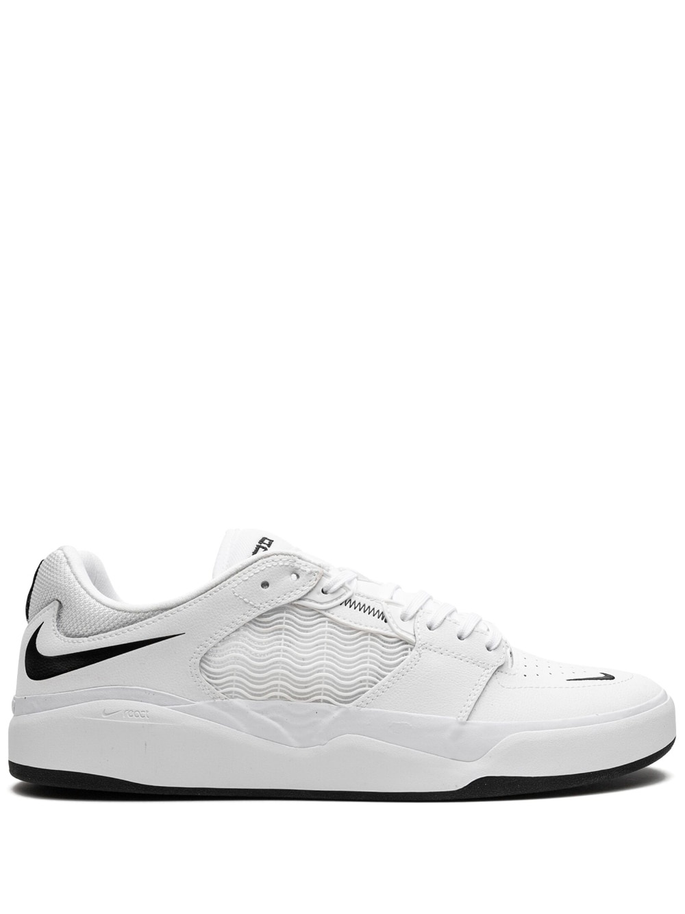 SB Ishod Premium low-top sneakers Designed by American skateboarder, Ishod Wair, these Nike SB sneakers are inspired by '90s basketball shoes and built for more durability. They're crafted from a mix of leather and mesh panels and highlighted by an oversized Swoosh at the rear. Underneath, the rubber sole adds comfort and traction. Highlights - White - Leather - Mesh panelling - Signature swoosh logo detail - Round toe - Front lace-up fastening - Branded insole - Rubber sole - These styles are supplied by a premium sneaker marketplace. stocking only the most sought-after footwear, they source and curate some of the most hard to find sneakers from around the world. Imported Composition Lining: Fabric 100% Outer: Leather 100%, Fabric 100% Sole: Rubber 100%
