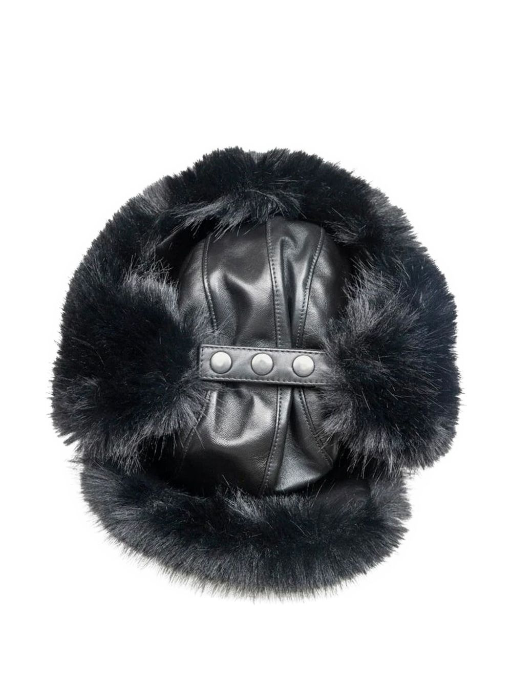 leather faux fur-trimmed hat Highlights - Black - Leather - Faux-fur trim - Snap button fastening Made in Italy Composition Outer: Lambskin 100%, Artificial Fur 100% Lining: Viscose 100%