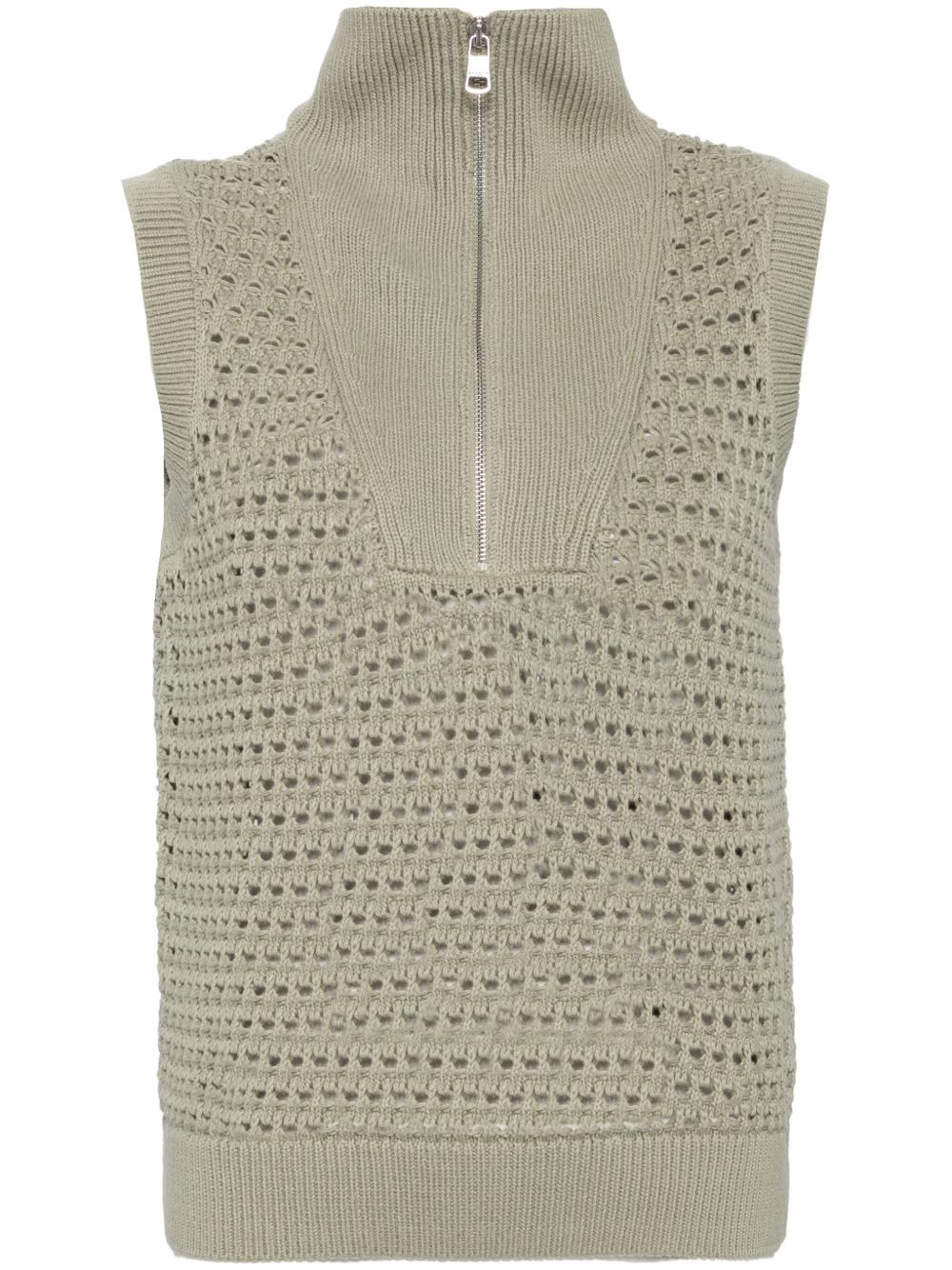 Bains knitted top Highlights - Seagrass green - Cotton - Open knit - High neck - Half front zip fastening - Sleeveless - Straight hem - Ribbed hem Imported Composition Cotton 100% SIZE & FIT Model measurements Height 5 ft 9 in(1.76 m) Bust/Chest 31.1 in(79 cm) Hips 35.03 in(89 cm) Waist 24.4 in(62 cm) FittingInformation Designed to be unstructured, offering a loose fit throughout Made with a midweight knit, this piece offers some stretch This piece fits true to size – take your usual size Washing instructions Machine Wash