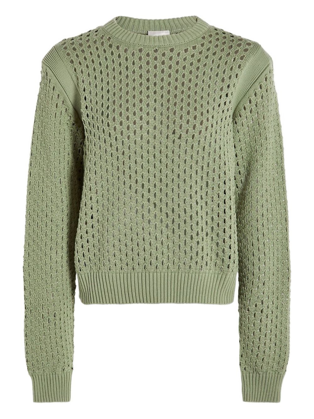 Hains open-knit crew-neck sweater Highlights - Light green - Open knit - Crew neck - Long sleeves - Ribbed hem Imported Composition Cotton 100% Washing instructions Read Manufacturer Guidelines