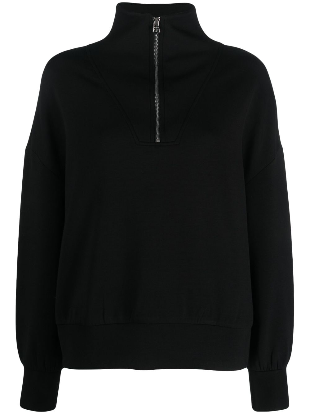 Hawley zip-up sweatshirt Highlights - Jet black - Stretch-design - Panelled design - Funnel neck - Short front zip fastening - Drop shoulder - Long sleeves - Elasticated cuffs and hem Made in United Kingdom Composition Viscose 72%, Polyester 23%, Elastane 5% SIZE & FIT FittingInformation Designed for a relaxed fit, this piece allows for comfort and movement when worn Made from a midweight stretch fabric, this piece offers elasticity and flexibility when worn Measurement SLEEVE LENGTH 17.51 in(44.5 cm) LENGTH 21.49 in(54.6 cm) WAIST 40.98 in(104.1 cm) BUST 50 in(127 cm) Washing instructions Machine Wash