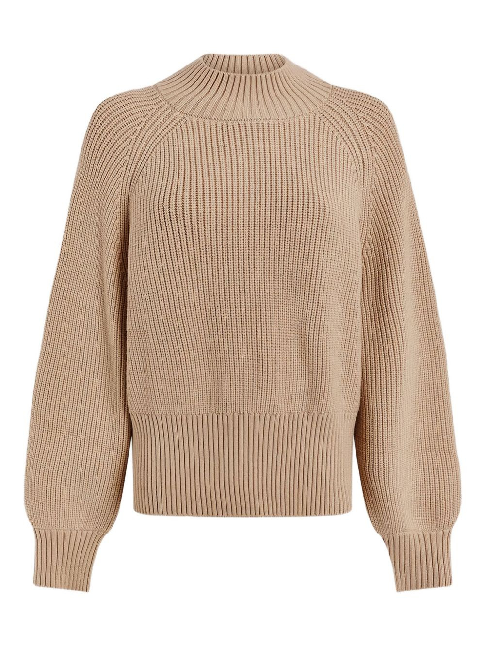 high-neck ribbed jumper Highlights - Beige - High neck - Ribbed knit - Raglan sleeves - Boxy shape - Cropped hem Imported Composition Viscose 42%, Polyester 30%, Nylon 20%, Lyocell 8% Washing instructions Read Manufacturer Guidelines