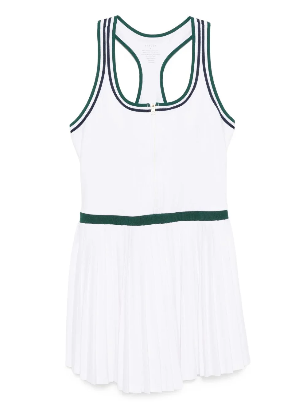 Jane court dress Highlights - White - Rear zip fastening - Pleat detailing - Applique logo Imported Composition Lining: Polyester 84%, Elastane 16% Outer: Recycled Polyester 52%, Polyester 36%, Elastane 12% Washing instructions Machine Wash