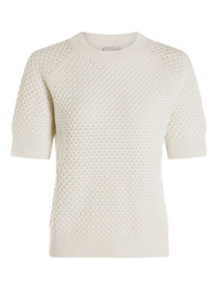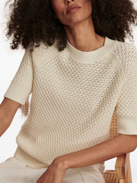 Lucy textured short-sleeve T-shirt Highlights - Off-white - Open knit - Raglan sleeves - Round neck - Short sleeves - Textured pattern Made in United Kingdom Composition Viscose 50%, Nylon 30%, Polyester 20% Washing instructions Read Manufacturer Guidelines