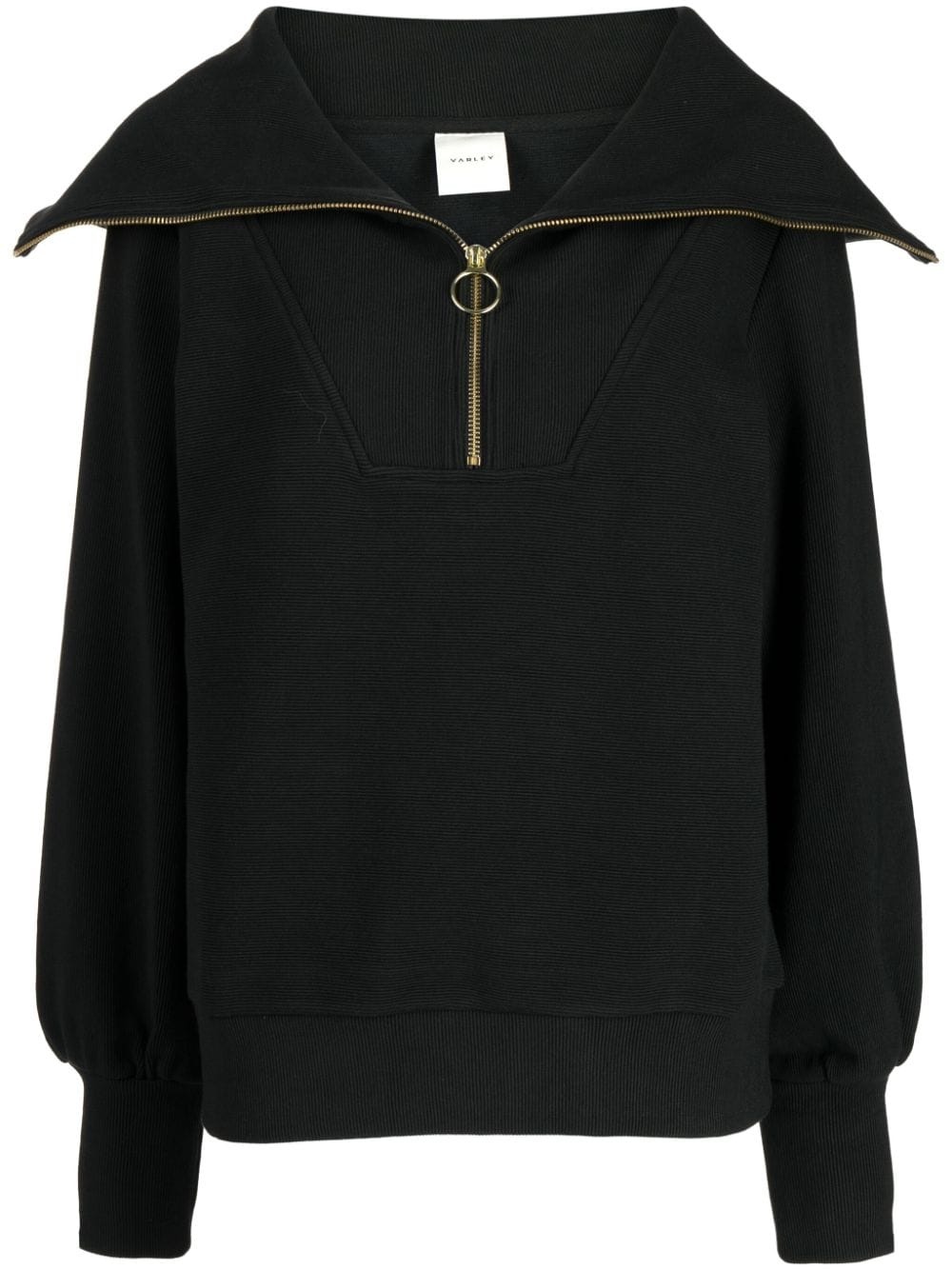 oversize-collar ribbed jumper Highlights - Black - Cotton - Fine ribbed - Gold-tone hardware - Spread collar - Long sleeves - Ribbed cuffs and hem - Straight hem Imported Composition Cotton 53%, Polyester 46%, Elastane 1% Washing instructions Machine Wash