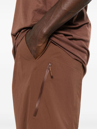Spere trousers Highlights - Chocolate brown - Front press-stud and zip fastening - Waist tabs - Two diagonal pockets to the sides - Two side zip-fastening pockets Imported Composition Polyamide 95%, Elastane 5% SIZE & FIT Model measurements Height 6 ft 0 in(1.84 m) Bust/Chest 37.79 in(96 cm) Hips 37 in(94 cm) Waist 31.49 in(80 cm) FittingInformation Designed for a straight-leg, allowing for an unrestricted and comfortable fit over the leg Made from a lightweight stretch fabric, this piece offers elasticity and flexibility when worn