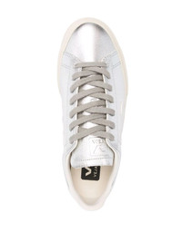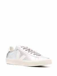Campo low-top sneakers Made from corn waste leather, the Campo sneakers were launched in 2019 and are one of VEJA's iconic shoes. Crafted in Brazil with locally sourced materials, this silver-tone pair features a recognisable V logo on both sides and a contrasting branded heel counter. Highlights - Silver-tone - Leather - Round toe - Front lace-up fastening - Logo patch to the side - Branded heel counter - Branded insole - Flat sole Imported Composition Sole: Rubber 100% Lining: Fabric 100% Outer: Calf Leather 100% SIZE & FIT Measurement HEEL 1.18 in(3 cm) Sole height 0.98 in(2.5 cm)