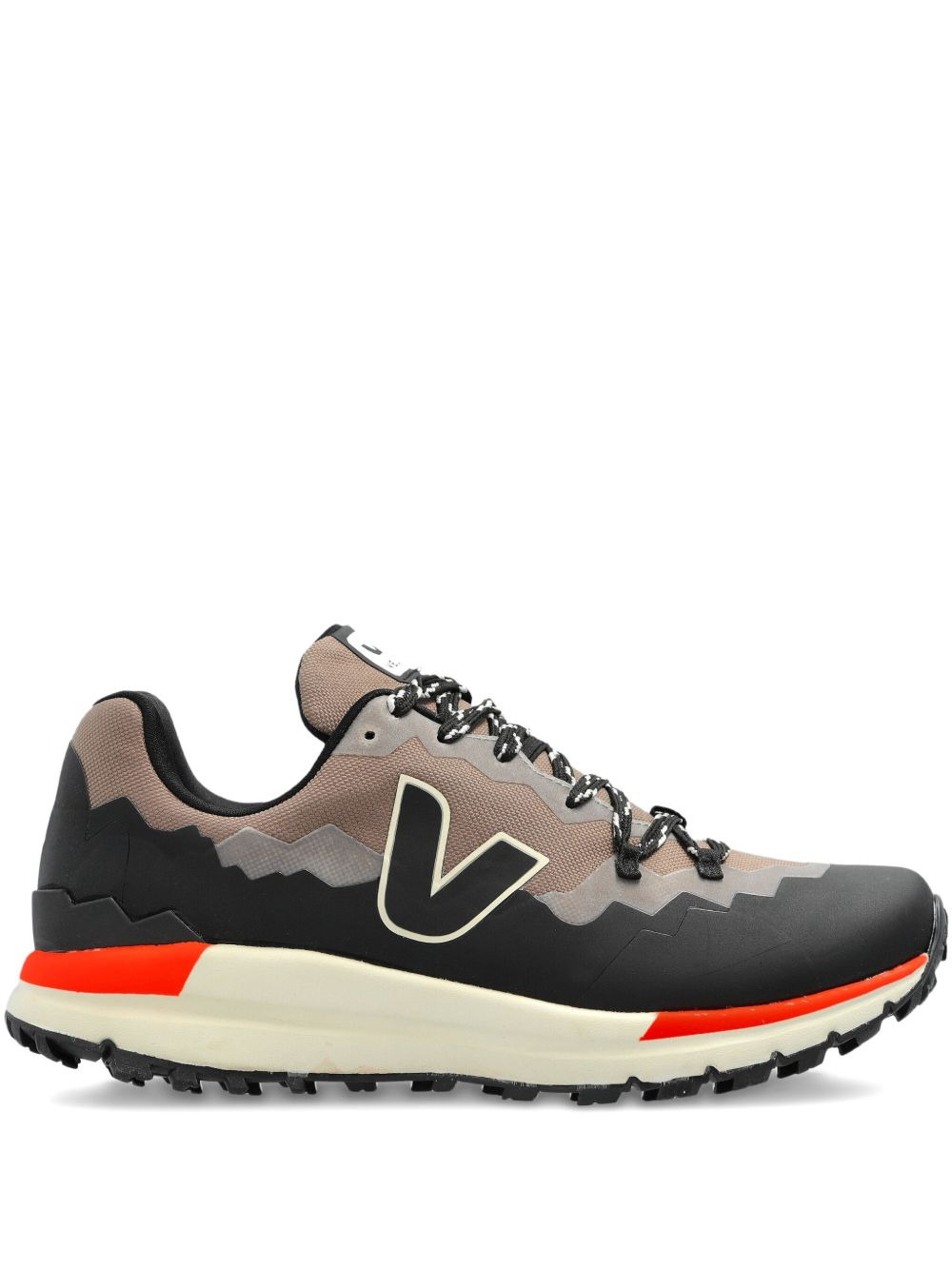 Fitz Roy lace-up sneakers Highlights - Basalt black - Rubber sole - Lace-up fastening - Textured panels - Contrasting orange heel insert Imported Composition Outer: Recycled Polyester 100%, Thermoplastic Polyurethane (TPU) 100% Lining: Recycled Polyester 100% Sole: Rubber 100%