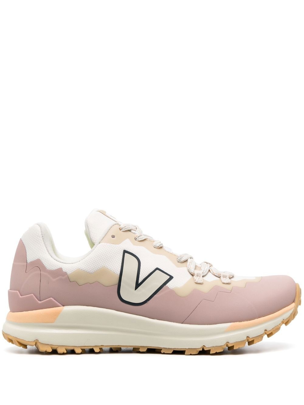 low-top sneakers Veja merges retro-inspired detailing with a streamlined silhouette in these low-top sneakers. Boasting a panelled design, they're elevated by signature logo applique at the sidewall for an instantly recognisable finish. Highlights - Pink/multicolour - Mesh panelling - Applique logo - Logo patch at the tongue - Round toe - Front lace-up fastening - Branded footbed - Rubber sole Imported Composition Sole: Rubber 100% Outer: Fabric 100%, Rubber 100% Lining: Fabric 100% SIZE & FIT Measurement HEEL 1.37 in(3.5 cm) Sole height 0.78 in(2 cm)