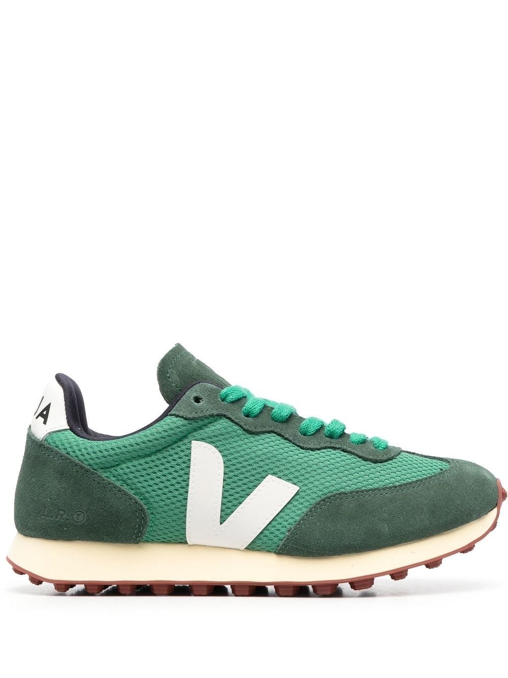 Rio Branco Alveomesh low-top sneakers Inspired by retro running styles, VEJA's Rio Branco sneakers have a sleek silhouette that sits atop a segmented rubber sole. This version of the panelled mesh style is presented in a striking shade of emerald green. Highlights - Emerald green/white - Calf suede - Mesh panelling - Logo patch to the side - Round toe - Front lace-up fastening - Logo-embossed tongue - Contrasting branded heel counter - Segmented rubber sole Imported Composition Suede 100% SIZE & FIT FittingInformation This piece fits small – take one size up Measurement HEEL 0.98 in(2.5 cm) Sole height 0.59 in(1.5 cm)