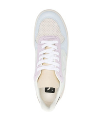 V-10 suede sneakers Crafting sneakers differently and 'infusing each stage of production with a positive impact', VEJA's signature low-top designs embrace simplicity and versatility through a streetwear lens. These V-10 low-top sneakers are crafted with a C.W.L. upper and boast a signature 'V' logo patch to the side. Highlights - Mint green/multicolour - Suede - Leather trim - Logo-debossed tongue - Logo patch to the side - Perforation detail at the toe - Logo print to the rear - Branded insole - Round toe - Front lace-up fastening - Flat rubber sole Imported Composition Leather 100% SIZE & FIT Measurement HEEL 1.37 in(3.5 cm) Sole height 0.98 in(2.5 cm)