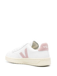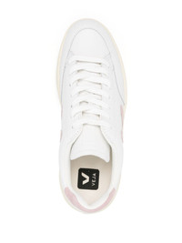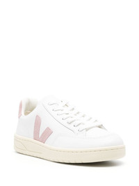 V-12 leather sneakers The V-12 sneakers are among VEJA's standout styles: they're recognisable thanks to the colourful 'V' logo patch to the sides and contrasting branded heel counter. The cream sole is made with Amazonian rubber. Highlights - White/pink - Calf leather - Smooth grain - Suede panels - Logo patch to the side - Logo print to the rear - Logo-debossed tongue - Logo at the sole - Round toe - Front lace-up fastening - Mesh lining - Branded insole - Rubber outsole Made in Italy Composition Leather 100% SIZE & FIT Measurement HEEL 1.37 in(3.5 cm) Sole height 0.59 in(1.5 cm)