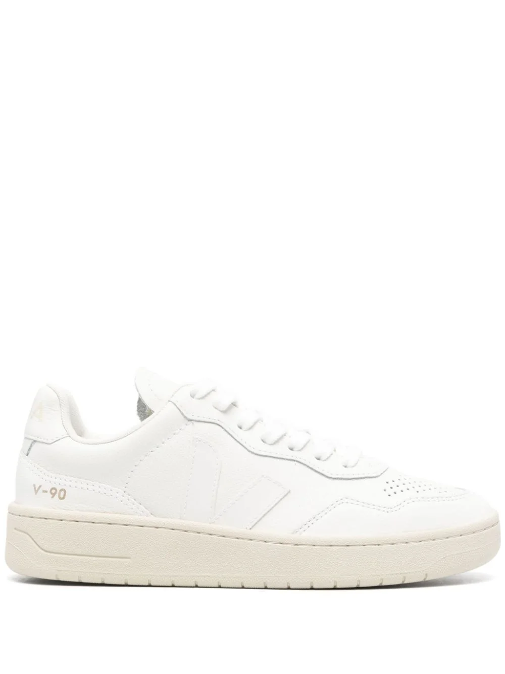 V-90 leather sneakers Highlights - White - Calf leather - Smooth grain - Panelled design - Round toe - Perforated toebox - Logo-print tongue - Applique logo to the sides - Branded heel counter - Padded ankle - Branded insole - Flat rubber sole - Front lace-up fastening Imported Composition Leather 100% SIZE & FIT Measurement HEEL 1.65 in(4.2 cm)