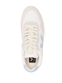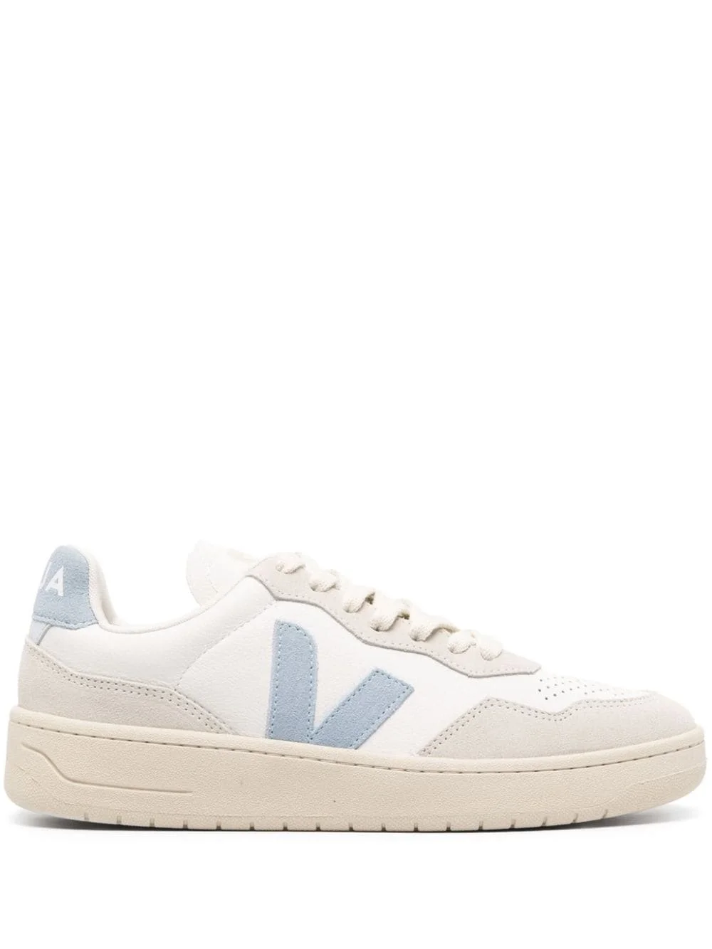V-90 low-top leather sneakers Highlights - White/alice blue/light grey - Calf leather - Suede panelling - Logo-print tongue - Logo patch to the side - Round toe - Perforated toebox - Front lace-up fastening - Contrasting branded heel counter - Branded insole - Flat rubber sole Made in United Kingdom Composition Leather 100% SIZE & FIT Measurement HEEL 0.98 in(2.5 cm) Sole height 0.78 in(2 cm)