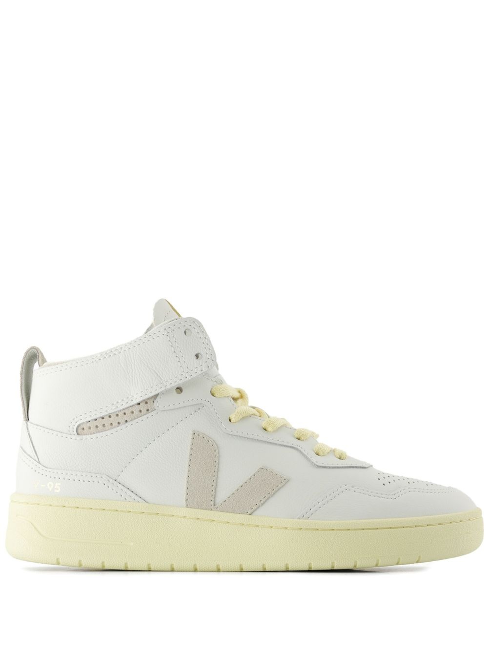 V-95 leather sneakers Highlights - White/pastel yellow - Panelled design - Front lace-up fastening - Pull-tab at the heel - Logo patch at the tongue - Perforated detailing - Round toe - Branded insole - Flat rubber sole Imported Composition Lining: Recycled Polyester 100% Outer: CALFSKIN 100% Sole: Rubber 100%