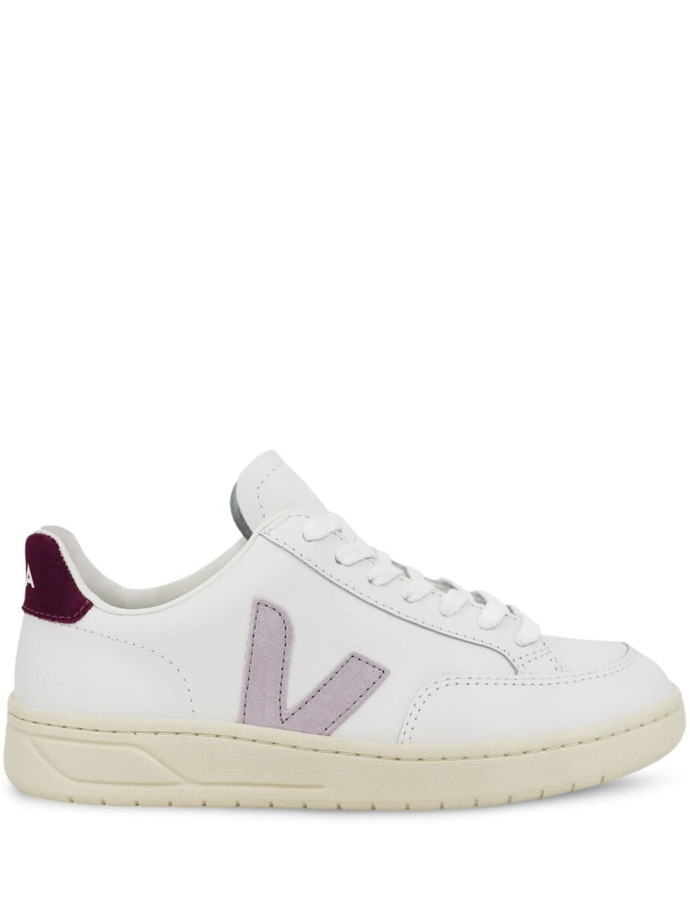 V12 low-top sneakers The low-top V12 sneakers are among Veja's standout styles: they're recognisable thanks to the colourful 'V' applique at the side and logo patch at the heel. The cream sole is made with Amazonian rubber. Highlights - White/light pink - Logo patch to the side - Contrasting branded heel counter - Round toe - Front lace-up fastening - Branded insole - Flat rubber sole Imported Composition Sole: Rubber 100% Lining: Fabric 100% Outer: Rubber 100% SIZE & FIT Measurement HEEL 1.18 in(3 cm) Sole height 0.59 in(1.5 cm) Washing instructions Read Manufacturer Guidelines
