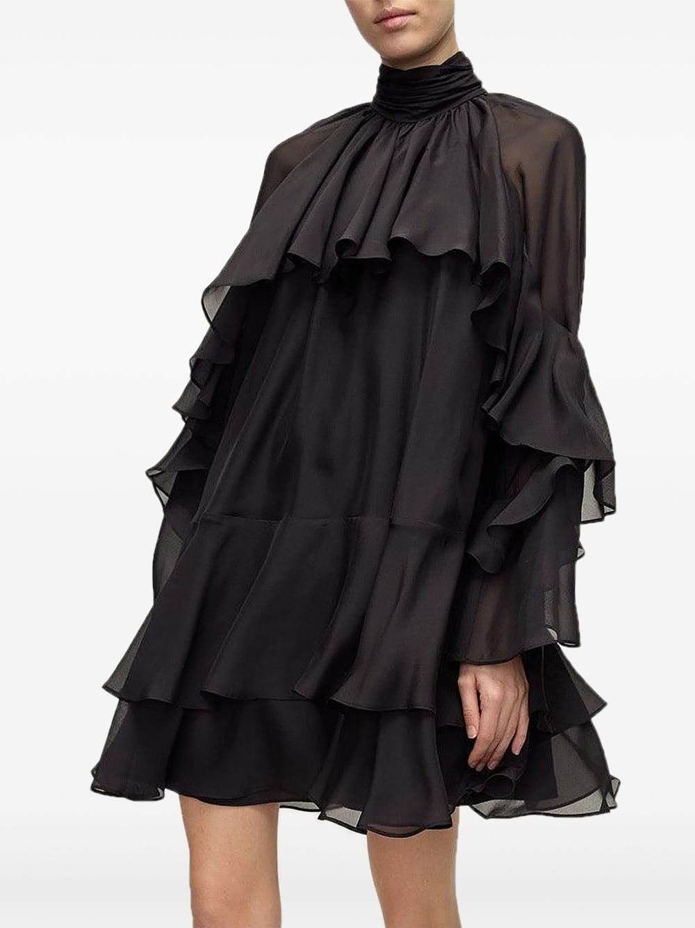 Adlington dress Highlights - Black - High neck - Layered ruffles - Long sleeves - Tiered skirt - A-line shape Imported Composition Silk 100% Washing instructions Read Manufacturer Guidelines