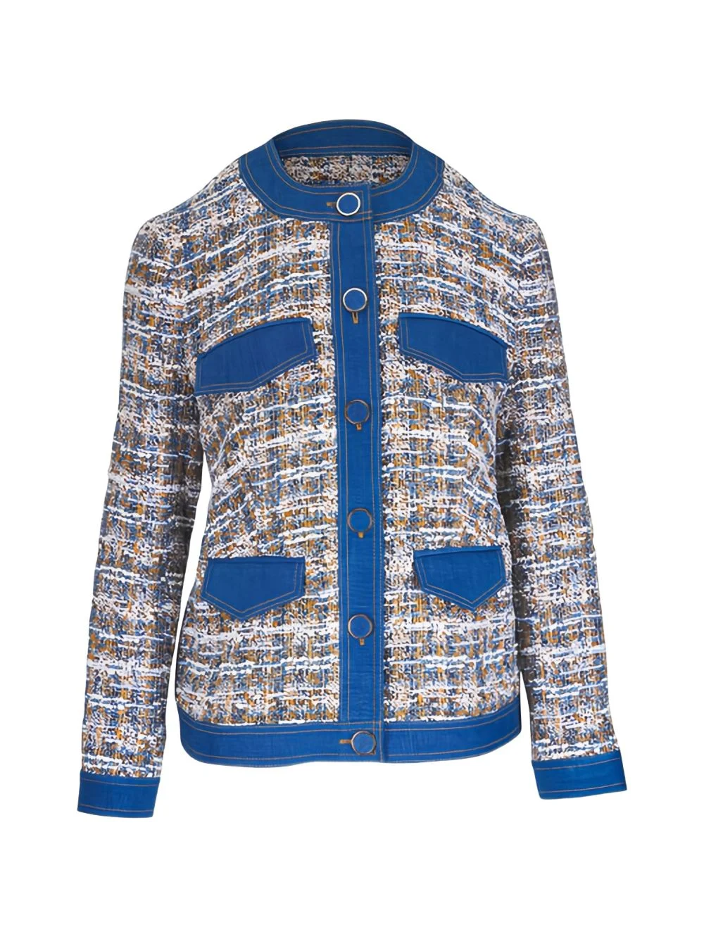 Ainslie tweed jacket Highlights - Blue - Tweed - Round neck - Flap pockets - Button fastening - Long sleeves Made in United States Composition Cotton 51%, Polyester 37%, Acrylic 8%, Fabric 3%, Polyamide 1% Washing instructions Dry Clean Only