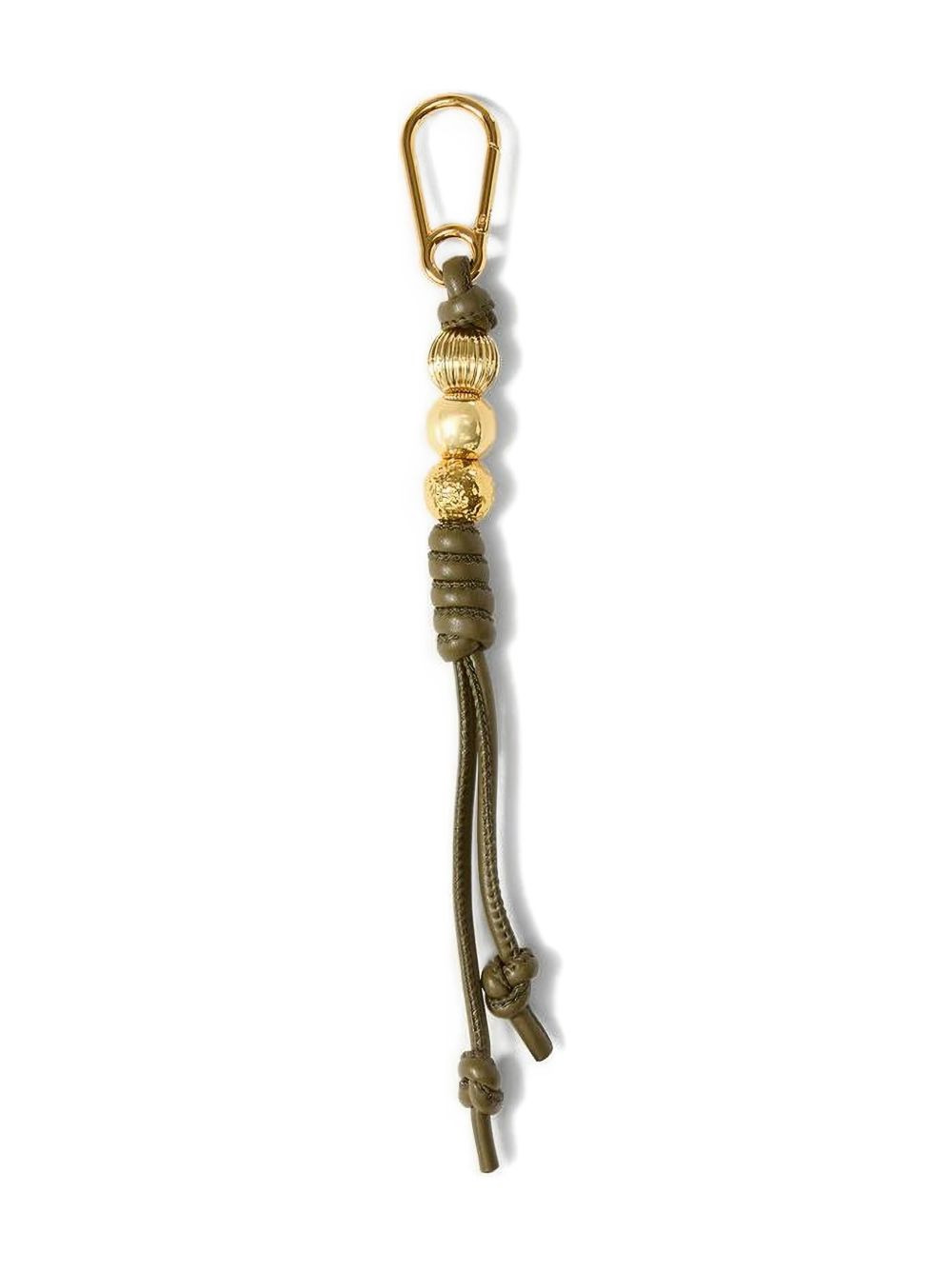 beaded knotted bag charm Highlights - Olive green - Faux-leather - Gold-tone beads - Knotted detail - Clasp fastening Imported Composition Polyurethane 100% SIZE & FIT Measurement LENGTH 11 in(27.9 cm)