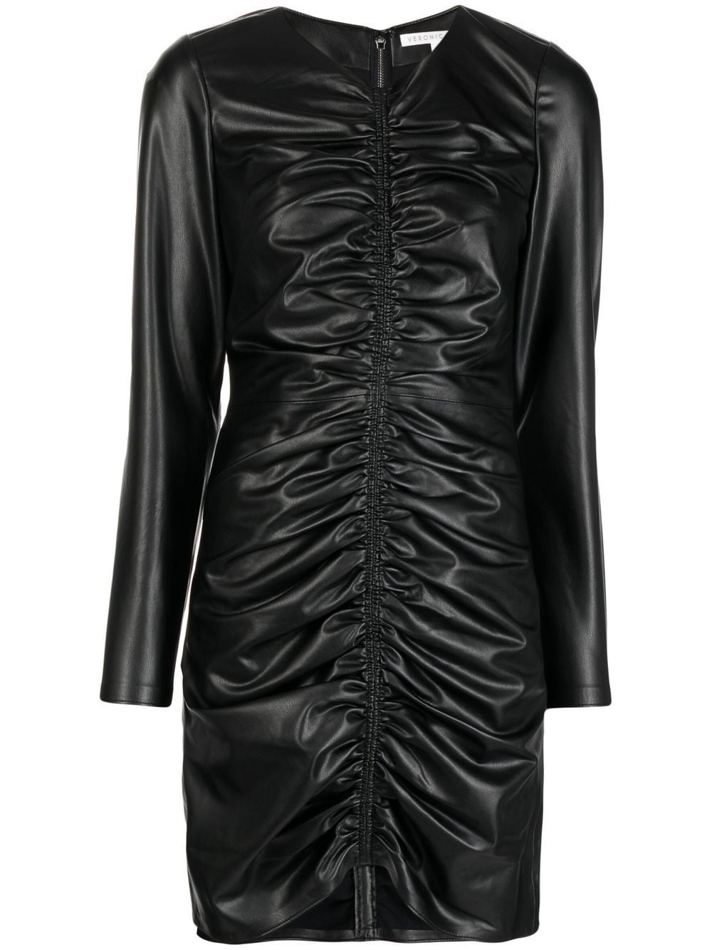 Bernadette draped dress black draped design V-neck rear zip fastening long sleeves fitted waistline thigh-length Imported Composition Body: Artificial Leather 100% Back: Rayon 95%, Spandex/Elastane 5% Lining: Polyester 100% SIZE & FIT Model measurements Height 5 ft 9 in(1.76 m) Bust/Chest 29.13 in(74 cm) Hips 33.07 in(84 cm) Waist 22.83 in(58 cm) FittingInformation This piece fits true to size. We recommend you get your regular size Cut for a slim fit Made with a mid-weight stretch fabric Washing instructions Hand Wash
