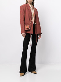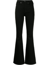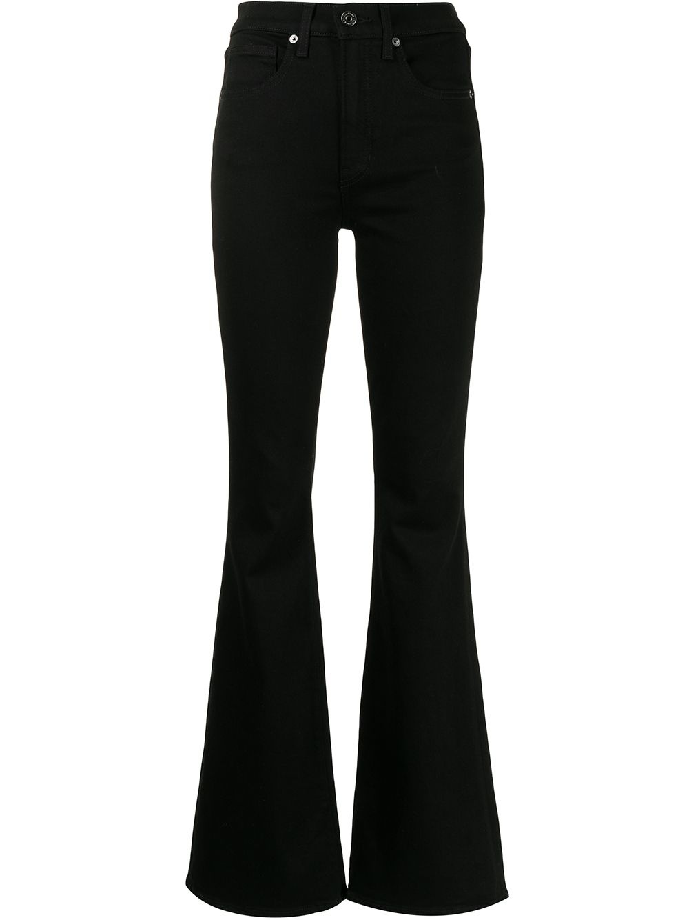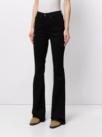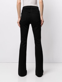 Beverly flared trousers onyx black stretch-cotton blend high waist front button and zip fastening flared classic five pockets Made in United States Composition Cotton 91%, Polyester 6%, Spandex/Elastane 3% SIZE & FIT Model measurements Height 5 ft 10 in(1.77 m) Bust/Chest 31.49 in(80 cm) Hips 34.64 in(88 cm) Waist 23.62 in(60 cm) FittingInformation This piece fits true to size. We recommend you get your regular size Designed to be fitted at the waist and through the thigh, loose from the knee Made with a mid-weight stretch fabric Washing instructions Dry Clean Only